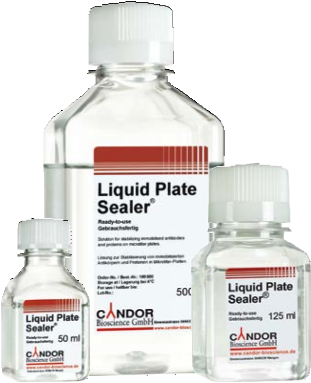Liquid Plate Sealer® is ready-to-use. Liquid Plate Sealer® is used directly after blocking and washing. Liquid Plate Sealer® seals and stabilizes coated proteins and antibodies. In case of strong background we recommend using The Blocking Solution (article number 110) before sealing.