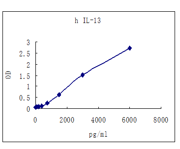 The Human IL-13 ELISA (Enzyme-Linked Immunosorbent Assay) kit is designed for detection of IL-13 in human plasma, serum, and cell culture samples.This assay employs a quantitative sandwich enzyme immunoassay technique that measures human IL-13 in approximately 3.5 hours. A polyclonal antibody specific for human IL-13 has been pre-coated onto a 96-well microplate with removable strips. IL-13 in standards and samples is sandwiched by the immobilized antibody and a biotinylated polyclonal antibody specific for human IL-13, which is recognized by a streptavidin-peroxidase (SP) conjugate. All unbound material is washed away and a peroxidase enzyme substrate is added. The color development is stopped and the intensity of the color is measured.