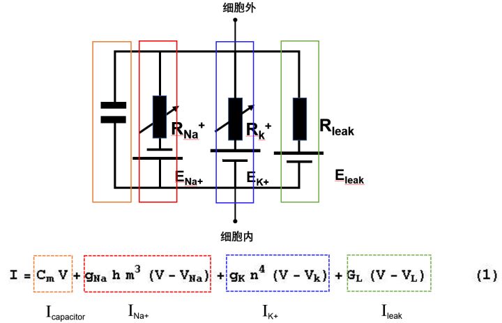 在完成實驗的同時,Hodgkin 和 Hoxley還以最簡化的模型描述了細胞動作電位的主要的離子機制,即細胞的動作電位元件構(gòu)成主要有4部分:電容器,電壓依賴的鈉離子通道,電壓依賴的鉀離子通道,獨立工作的漏電流通道。(根據(jù)基爾霍夫定律:各支路的電流總和等于總電流。)并且,HH模型還預測了鈉鉀離子通道的構(gòu)型,如h和m3就是鈉離子通道的3個孔道蛋白,h負責鈉離子通道在去極化過程中逐漸失活;h4也成功預測出了鉀離子通道具有4個孔道蛋白。因此,Hodgkin和 Huxley的工作在電生理領(lǐng)域是一座熠熠生輝的里程碑,至今都是初入細胞電生理領(lǐng)域的學生需要叩響的第一扇大門。